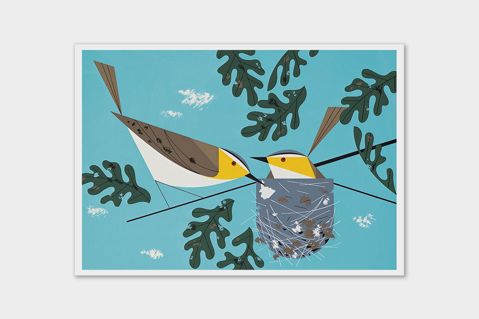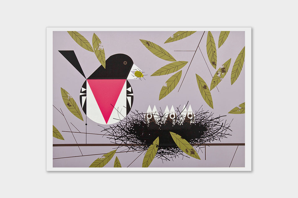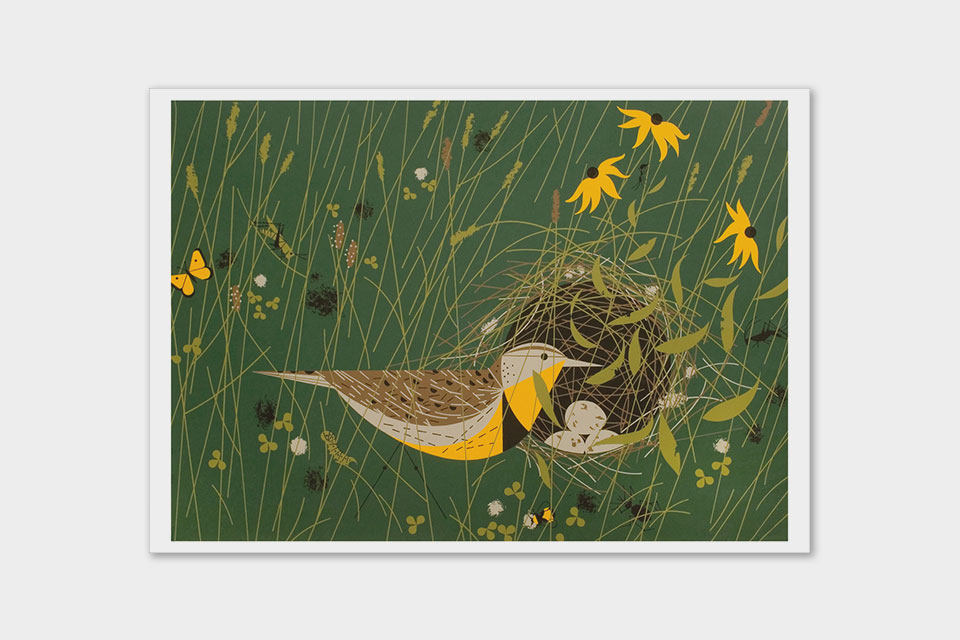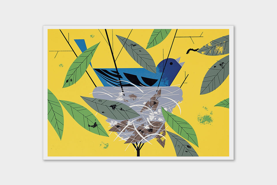 Home and family, comfort and sustenance—what does “nesting” mean to you? For wildlife artist Charley Harper, it might have called to mind a rose-breasted grosbeak bringing a bug to its nest full of baby birds. Or an eastern meadowlark watching over her eggs in a grassland hideaway. In his colorful Minimal Realist style, Harper opened a window on the world of birds, giving folks a peek into their nesting behaviors. This notecard set’s four images of “Harper happynest” will bring cheer to all. Contains five each of the following images: Indigo Bunting, Red-eyed Vireos, Rose-breasted Grosbeak, Eastern Meadowlark.
