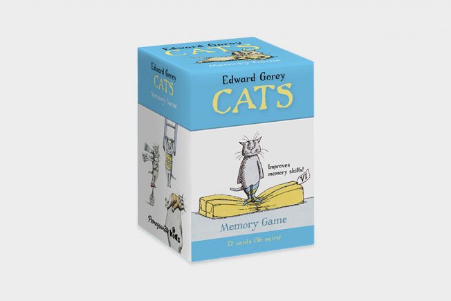 Trabalhe a sua memória com este jogo para dois ou mais jogadores. Cada carta apresenta um desenho de um gato de Edward Gorey. Combine pares para vencer enquanto se diverte com 72 gatinhos (36 pares) muito bem apresentados e extremamente ágeis. As instruções de jogo estão impressas na parte inferior da caixa, resistente e reutilizável, que armazena as cartas de forma organizada.